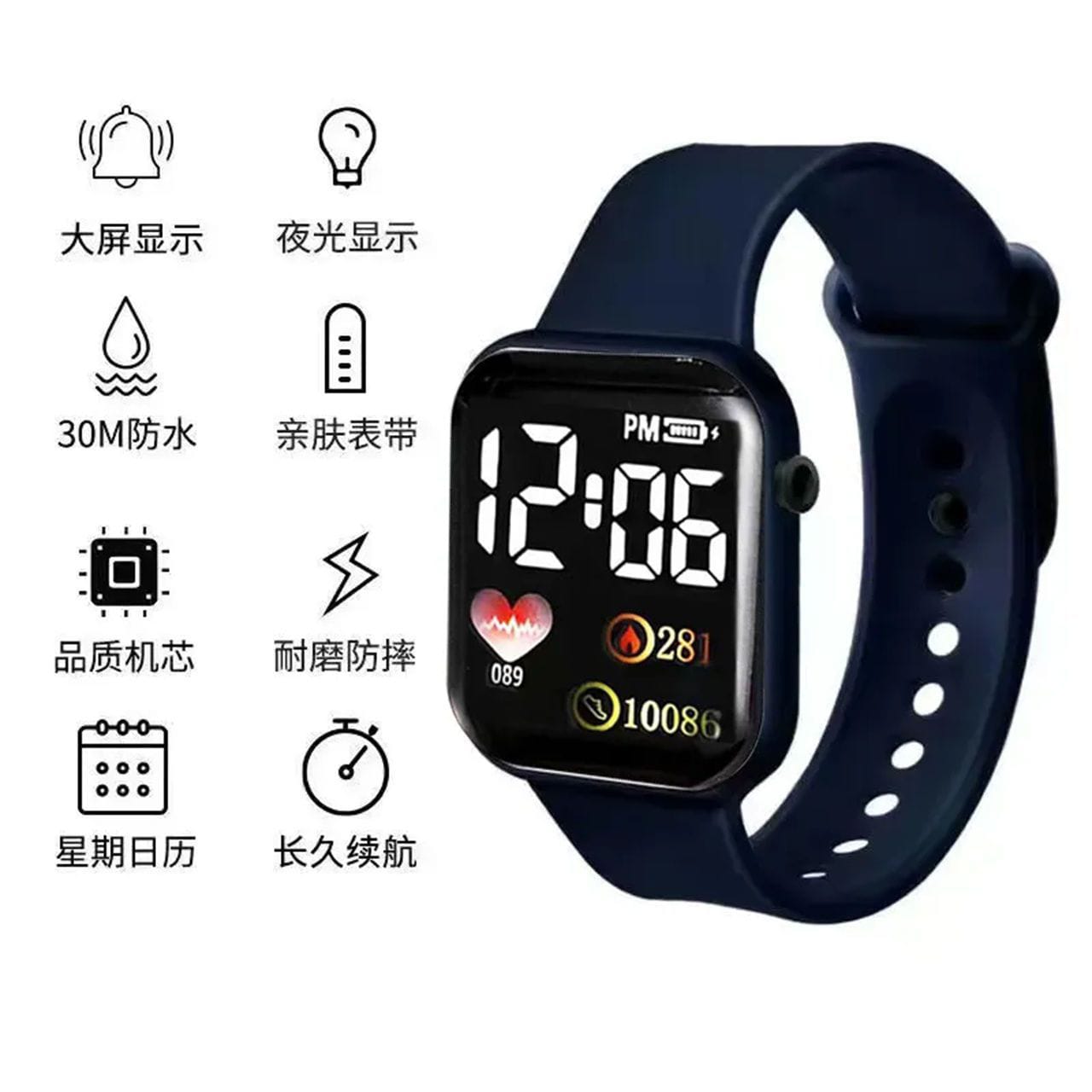 Upgrade your daily look with this stylish Digital LED Watch, designed with a modern big square screen and a comfortable silicone strap. The large LED display makes it easy to check time at a glance, making it perfect for school, office, gym, outdoor use, and casual wear.