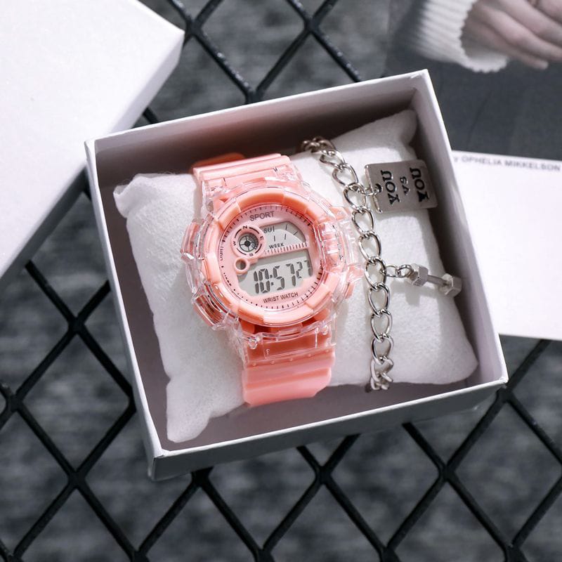 Make time management fun and fashionable with this Girls Sports Digital Watch, featuring a sleek transparent strap design and dual time display. This sporty watch is perfect for everyday use, with an easy-to-read digital display and comfortable fit, making it ideal for school, outdoor activities, and casual wear.