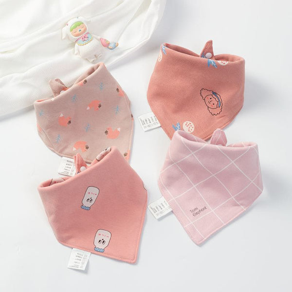 💕 Set of 4 bibs in soft pink hues with adorable patterns