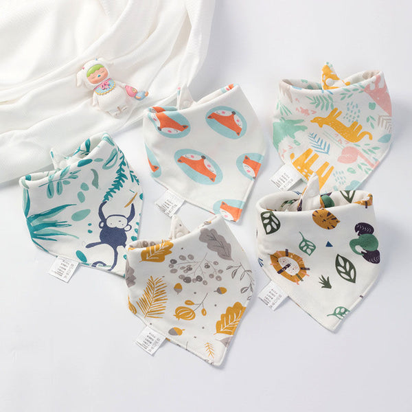 Made from premium, soft cotton fabric, these bibs feature adorable hand-drawn prints of foxes, lions, monkeys, leaves, and giraffes, celebrating nature and imagination. Each bib is designed with a double-layer absorbent backing to catch drool and spills, keeping your baby dry and happy throughout the day.